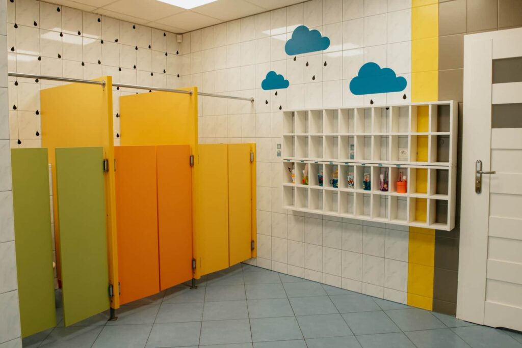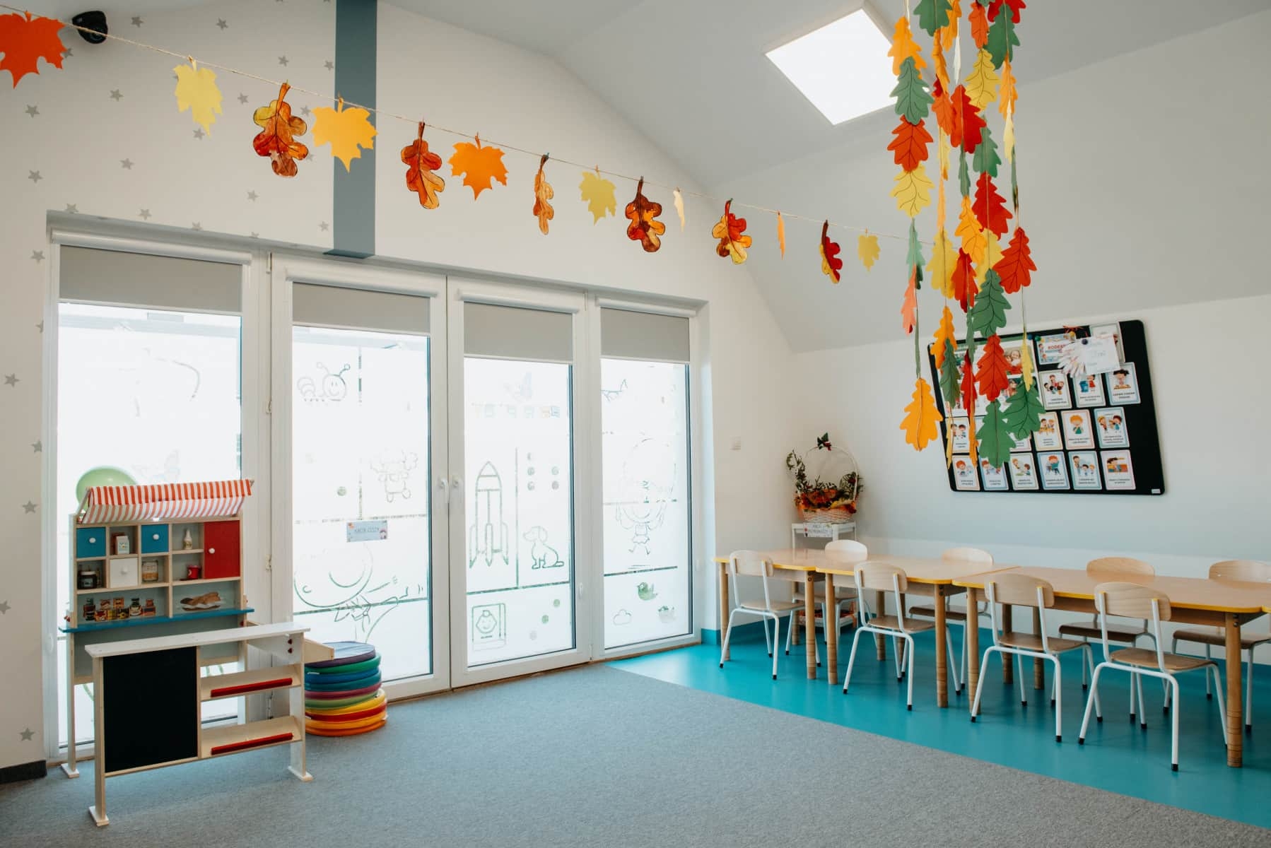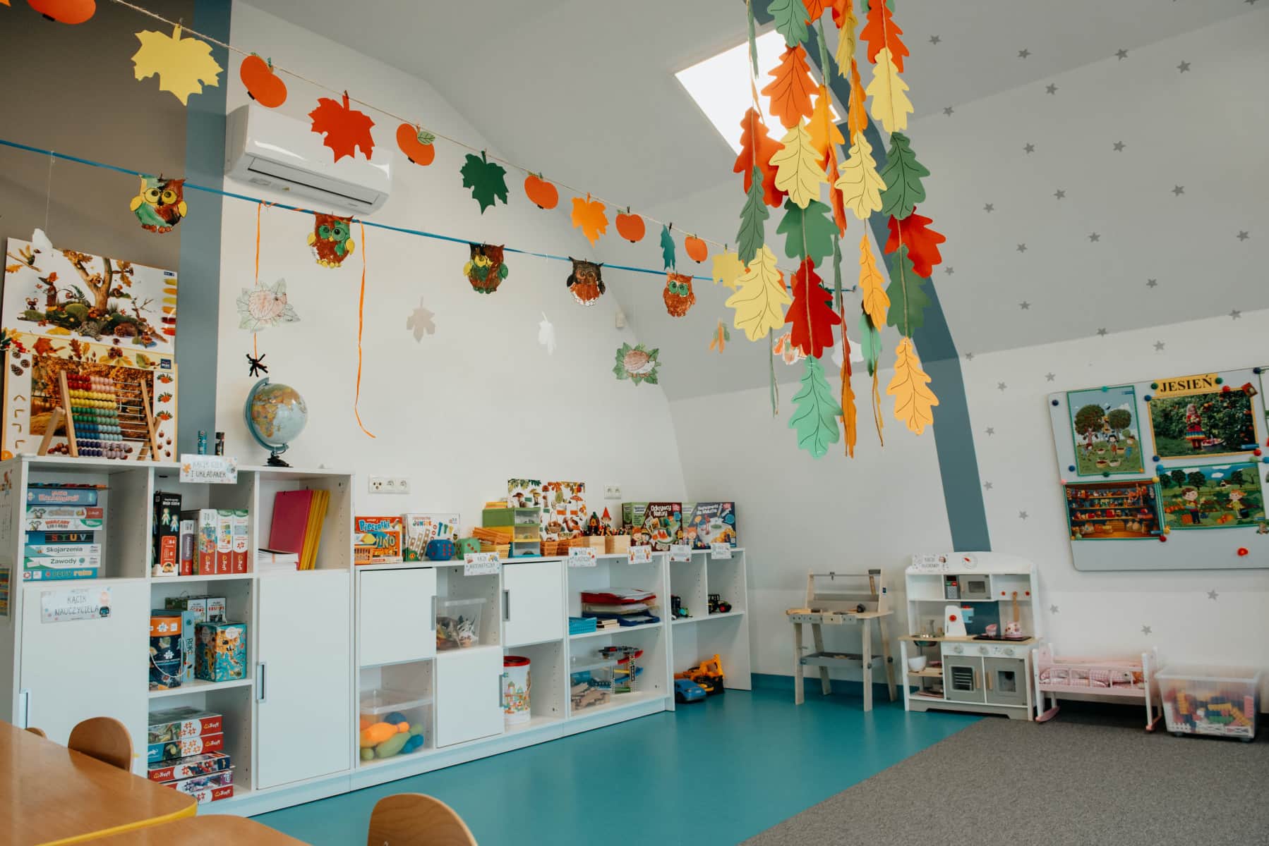 Wnętrze budynku jest po kapitalnym remoncie. Pomieszczenia zostały wyposażone w nowe meble i klimatyzację, a na ścianach pojawiły się piękne, wesołe kolory. Nasze przedszkole w Niepołomicach sprzyja rozwojowi dziecka i sprawia, że czuje się jak w domu.