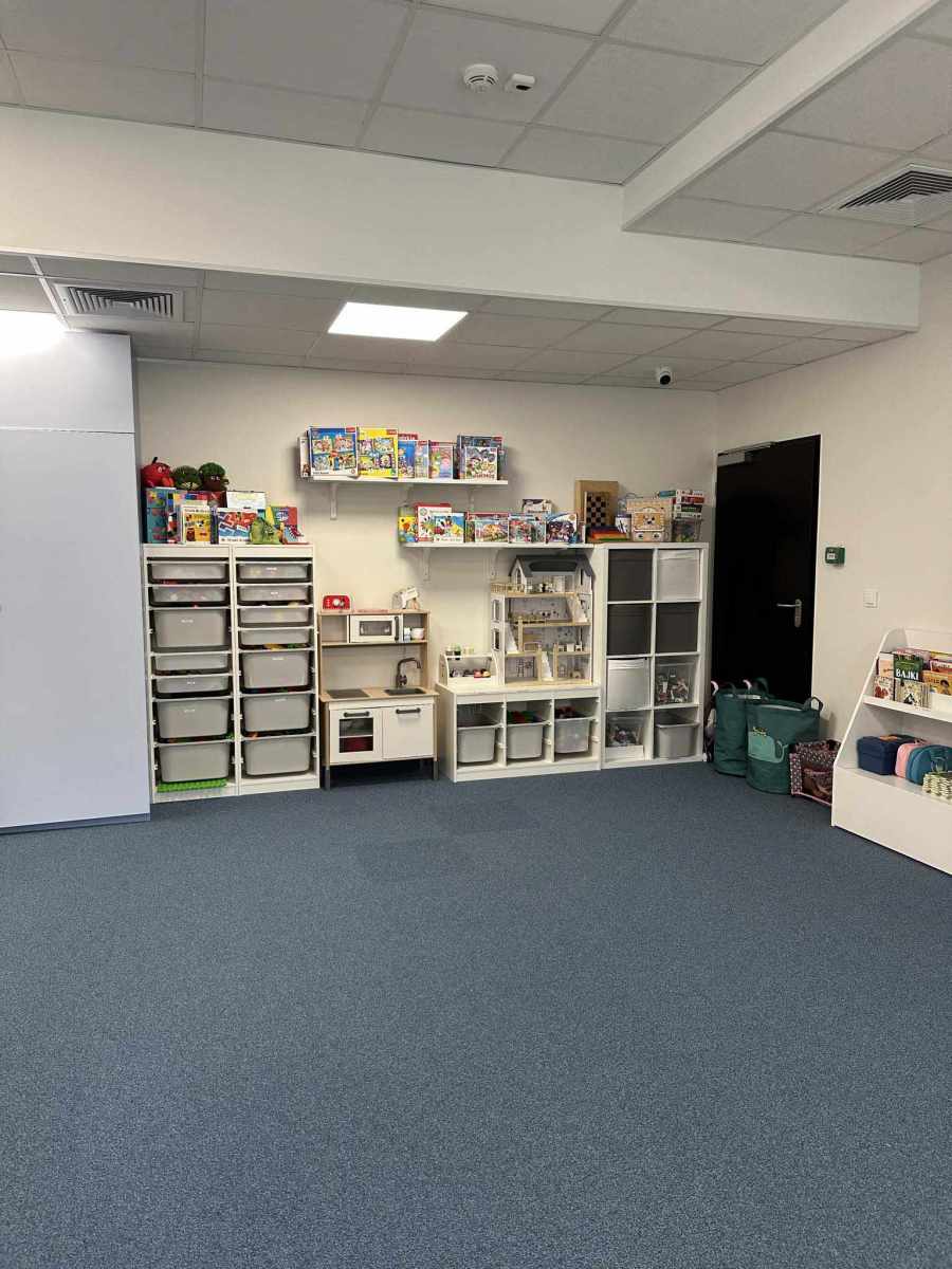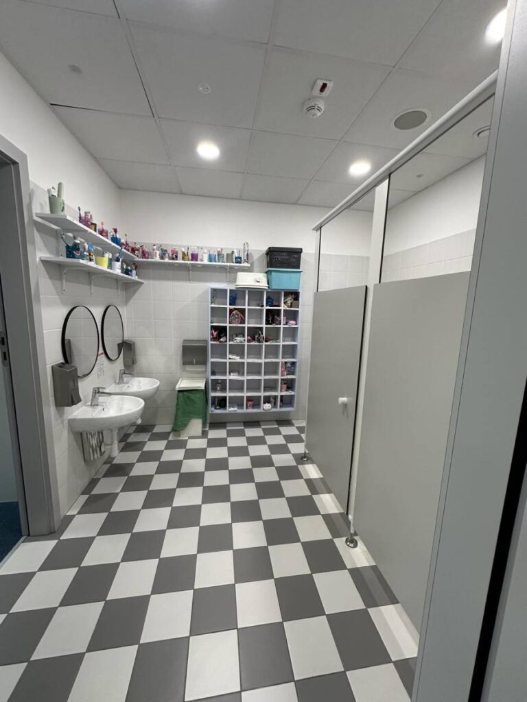Dodatkowo, obok budynku (od strony ulicy Harfowej), do użytku Rodziców oferujemy wózkownię, w której można pozostawić na czas pobytu Dziecka w Placówce wózek, rowerek lub hulajnogę.